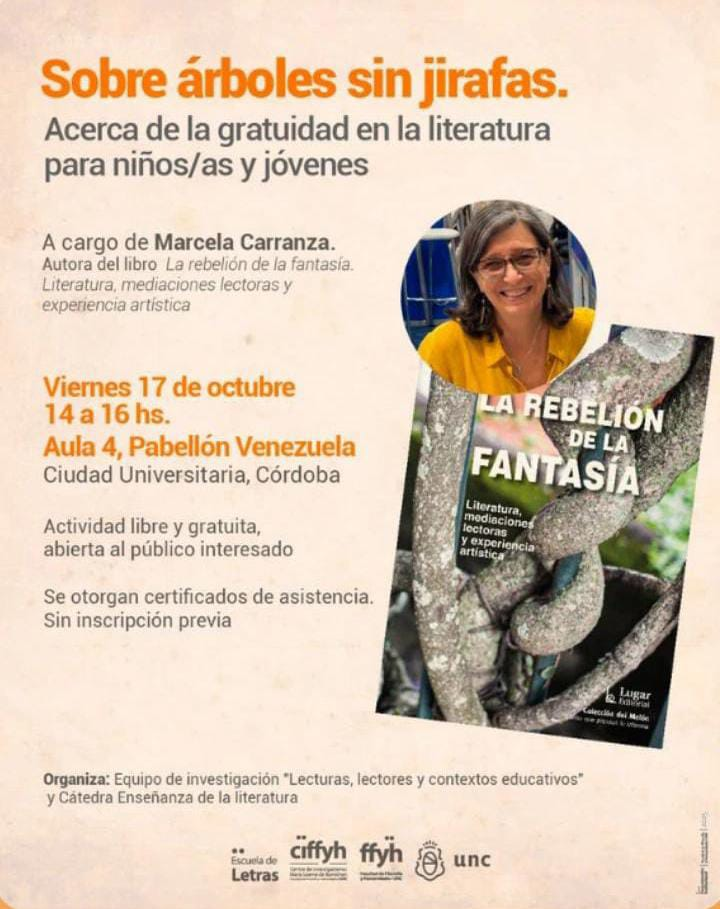Invitación a presentación: Sobre árboles es sin jirafas. Acerca de la gratuidad en la literatura para niños/as y jóvenes a cargo de Marcela Carranza. Posted on 3 octubre, 2025 by irial
